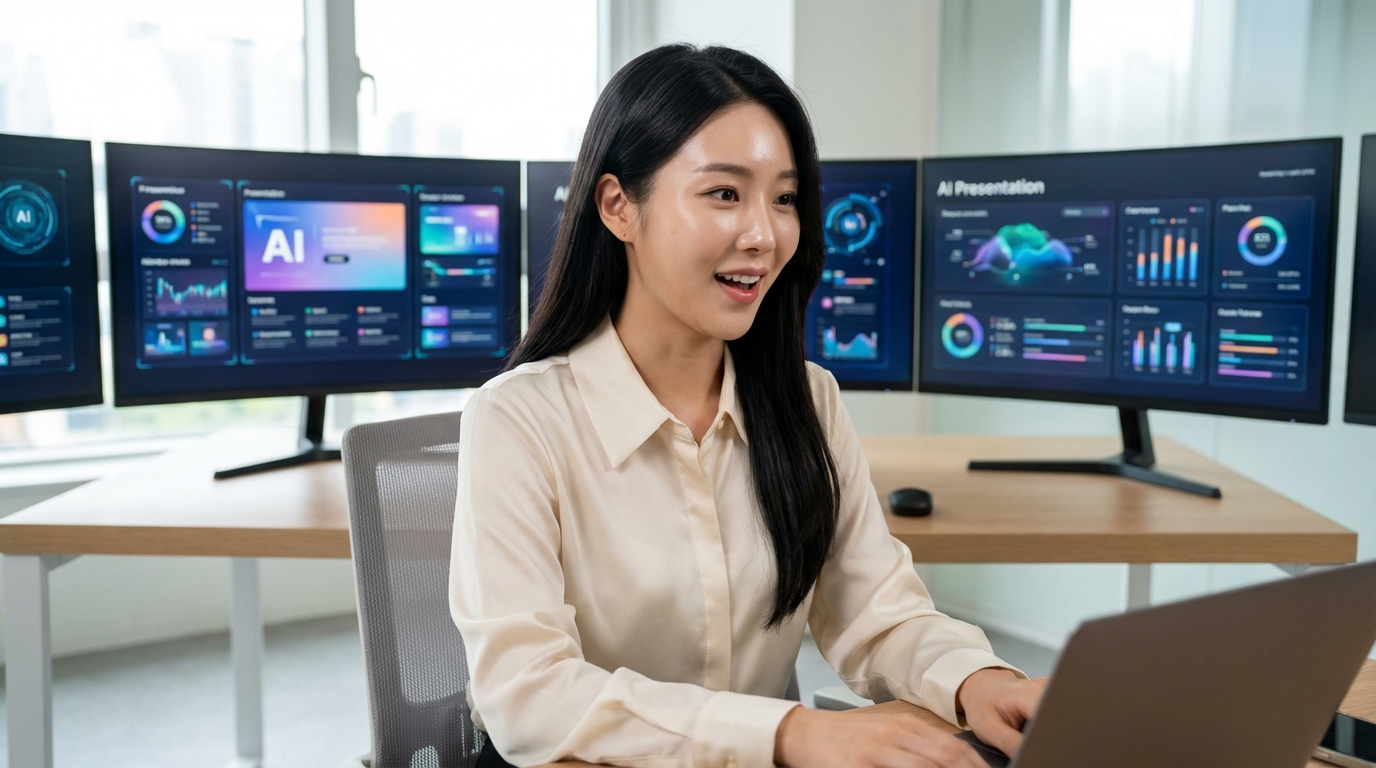 파워포인트는 자유도 면에서 압도적입니다. 원하는 건 다 됩니다. 애니메이션, 슬라이드 마스터, 세밀한 폰트 설정까지요. 그런데 바로 그게 진입 장벽이기도 합니다. 처음부터 끝까지 직접 만들어야 하니까요.