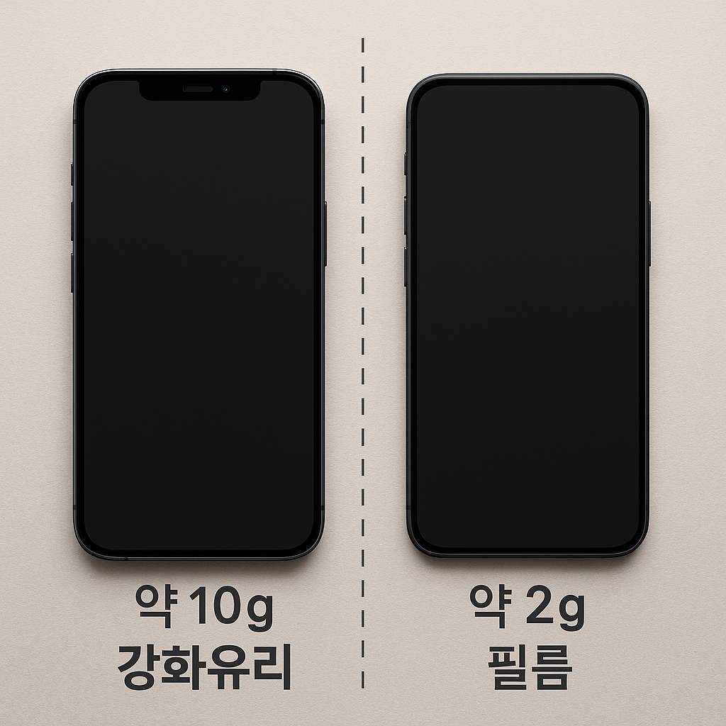 아이폰을 사용할 때 많은 사람들이 화면 보호를 위해 강화유리를 부착합니다. 하지만 손목이 아프거나 장시간 스마트폰을 들고 있는 분들에게는 강화유리의 무게가 생각보다 큰 부담이 될 수 있습니다. 저는 무게를 줄이기 위해 강화유리 대신 필름을 선택했고, 그 이유와 각각의 장단점을 정리해 보았습니다.